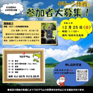 12月25日(日) 大分県、志高湖で「冬休み親子で楽しむ自然観察会&クリーン作...